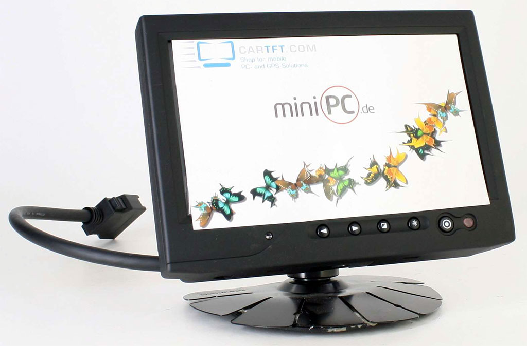 The device has integrated Stereo-speakers, a rear camera input and the dimmer button in the front will enable perfect viewing pleasure also during the night.